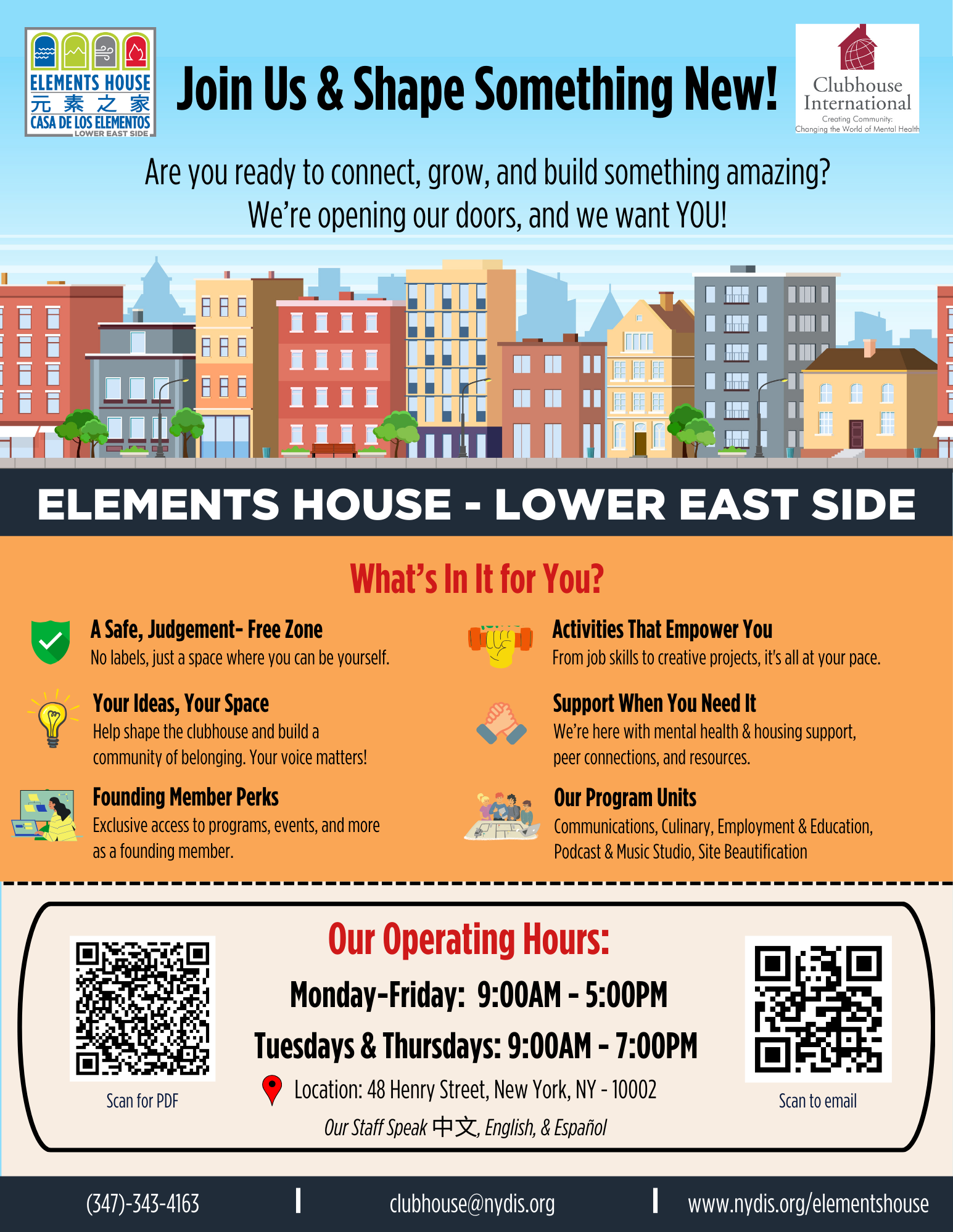 | Elements House - Lower East Side | 48 Henry Street | New York | NY | 10002 | (332) 400- 1957 | https://www.nydis.org/ |