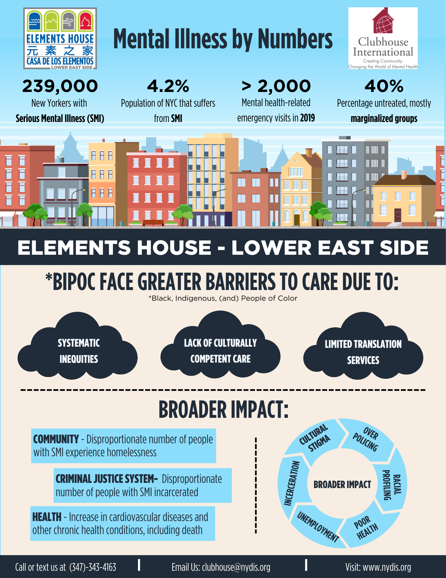 The Clubhouse International Model is an evidence-based approach that supports individuals with Serious Mental Illness (SMI) by engaging them as active members. This participation fosters a sense of agency and improves mental health, social skills, and vocational readiness while reducing hospitalization and homelessness. Despite its effectiveness, fewer than 2,500 people in New York City have access to this model, leaving many underserved.